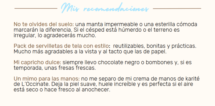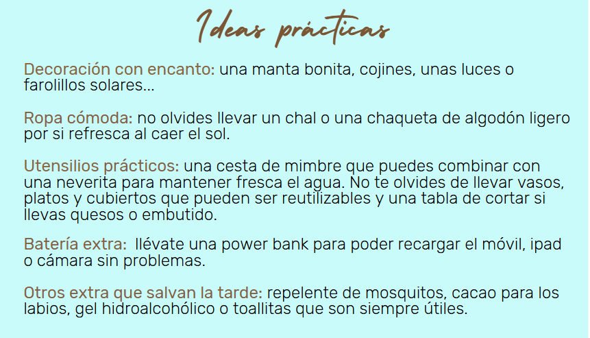 Una manta sobre el césped, una cesta con frutas frescas, quesos, pan crujiente, algo de vino o una limonada casera…